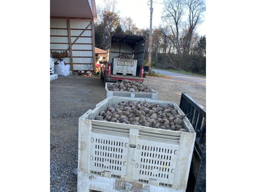 Fall beets are coming in by the ton tote! This year we grew an acre of fall beets, so we should have enough for everyone who is hungry for them! They were grown in a field that was in cover crops for a full year, so they are super happy coming out of well rested Earth.